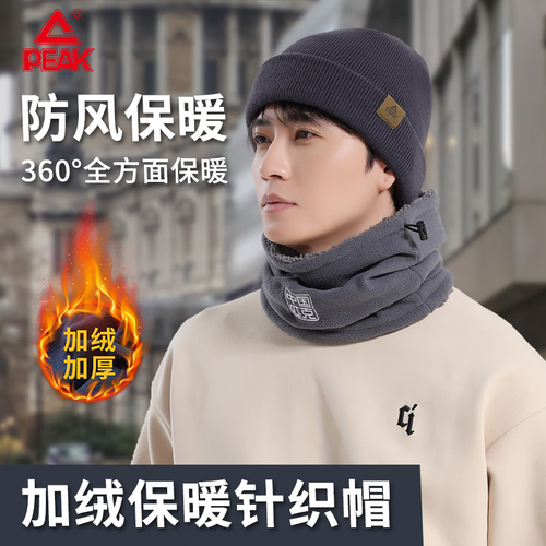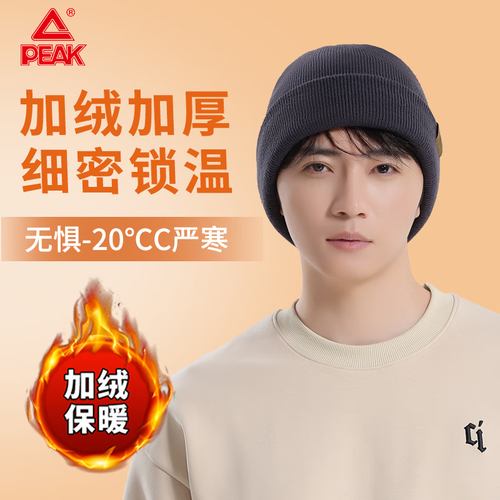- 匹克帽子男冬季男士冬天秋冬季保暖时尚针织帽毛绒帽跑步户外骑行防风 针织帽(加绒款)