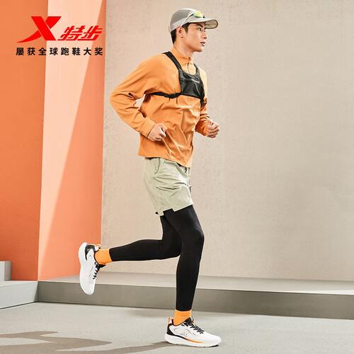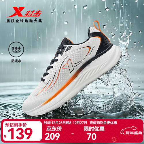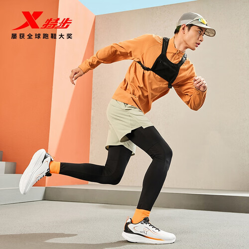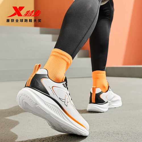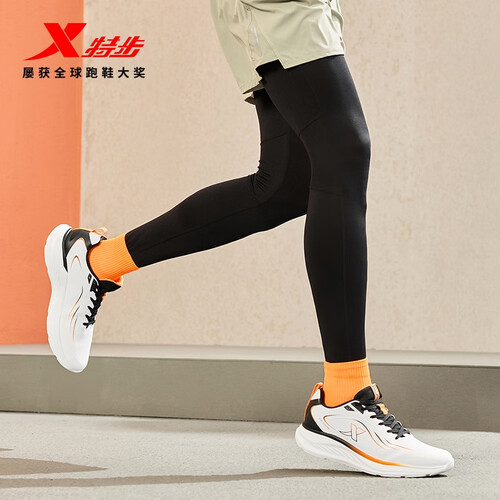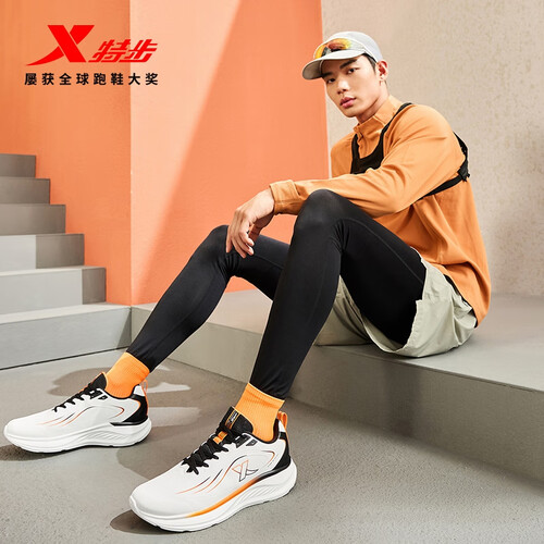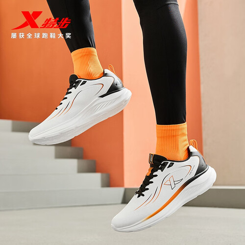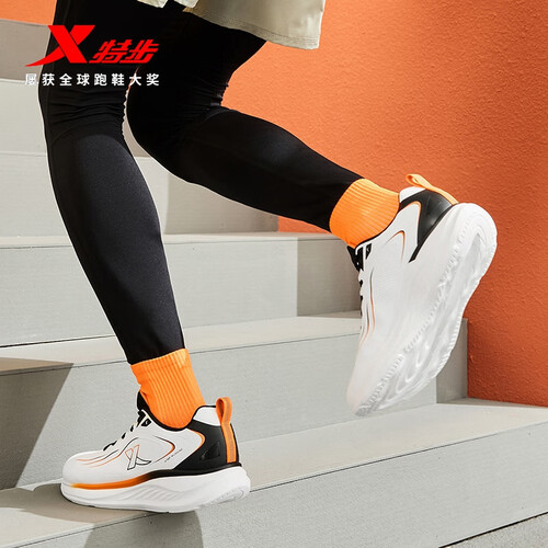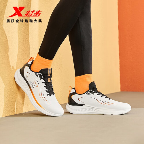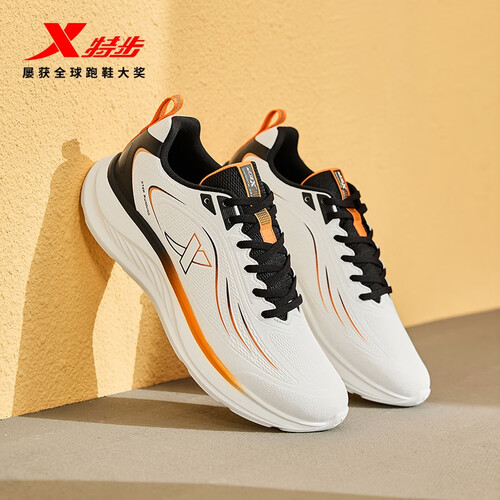 特步跑步鞋男鞋25年秋冬革面跑鞋耐磨防滑轻盈耐磨休闲运动通勤鞋子男 帆白/黑/熔岩橙 39