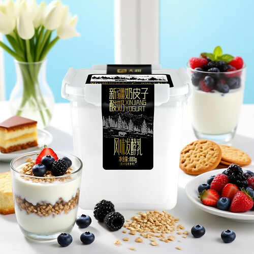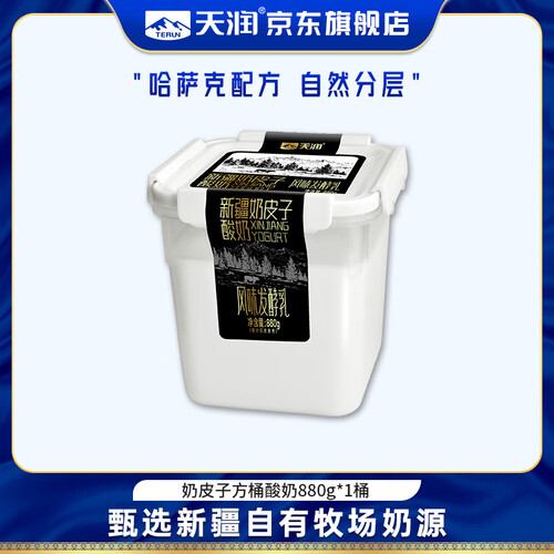 天润奶皮子酸奶 新疆特产方桶装全脂风味发酵乳 可微波循环桶酸牛乳 880g*1【新鲜直送】