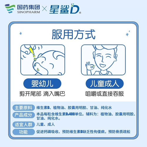 [星鲨]维生素D滴剂 400IU*36粒 1盒装 d3星鲨婴儿童成人维生素d 预防骨质疏松 佝偻病