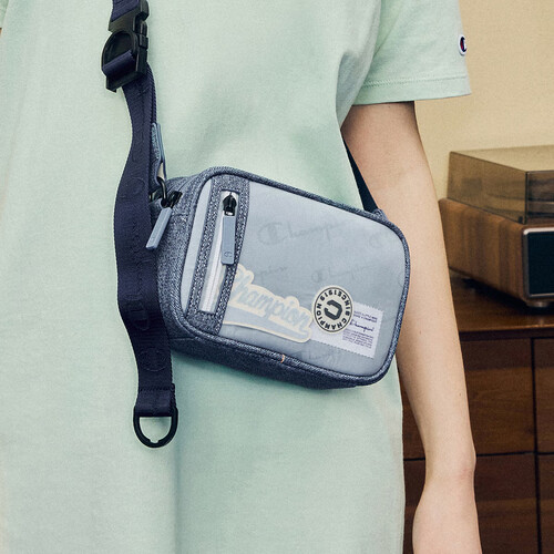 Champion冠军相机包男斜挎包潮牌徽章单肩方包女复古小食量痛包日常通勤 深蓝 均码
