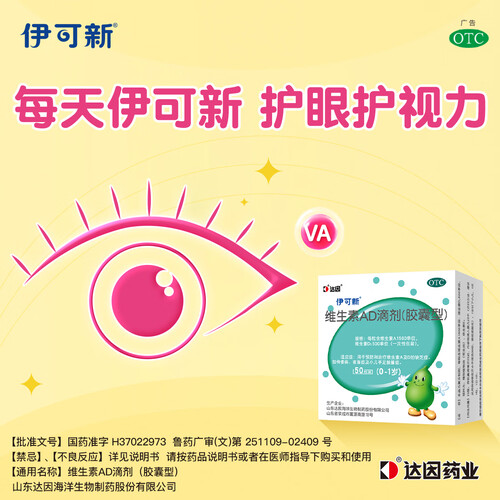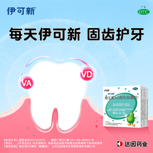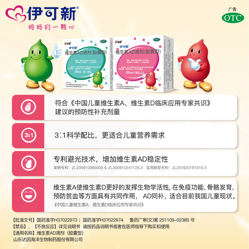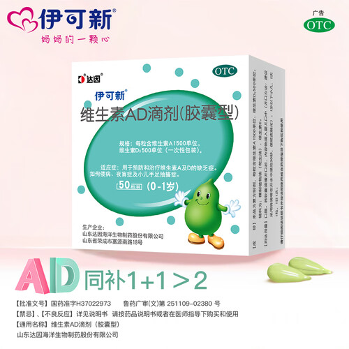 - [伊可新]维生素AD滴剂 2000IU:700IU*50粒 2盒装 (胶囊型)50粒 1岁以上促钙吸收护视力助长高固牙齿