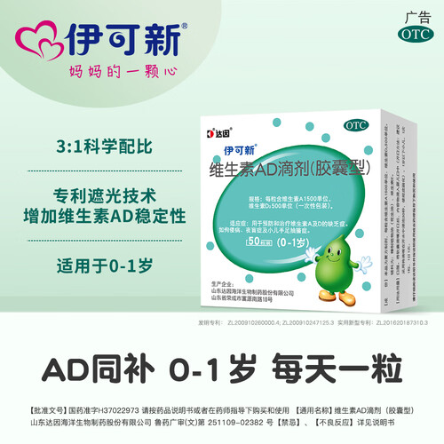 [伊可新]维生素AD滴剂 1500IU:500IU*50粒 2盒装 50粒 0-1岁婴幼儿 伊可新ad 促进钙吸收 护视力助长高固牙齿