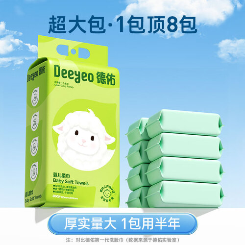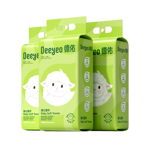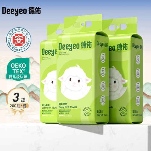 德佑悬挂式洗脸巾200抽*3提 大容量加厚干湿两用擦脸巾绵柔洁面纸巾