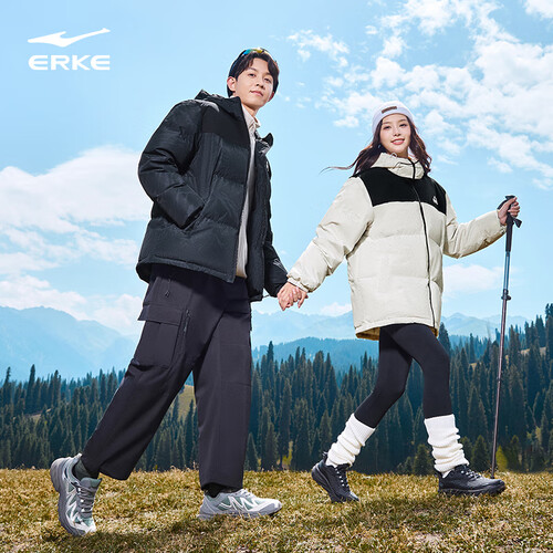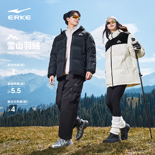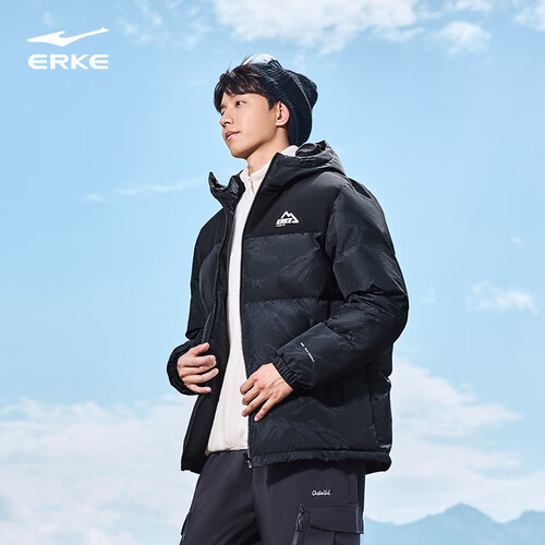 鸿星尔克四防|羽绒服男秋冬新款保暖防风防污防泼水户外休闲运动外套夹克 正黑 M