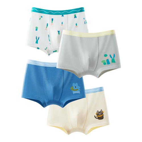 红豆儿童内裤男童中大童4条装纯棉A类抑菌短裤青少年发育期平角内裤 黄青蓝 (A类抑菌-抗菌底档) 170 【建议:160-170cm80-100斤】
