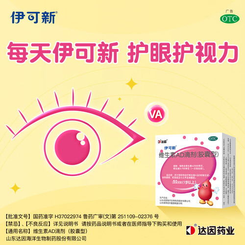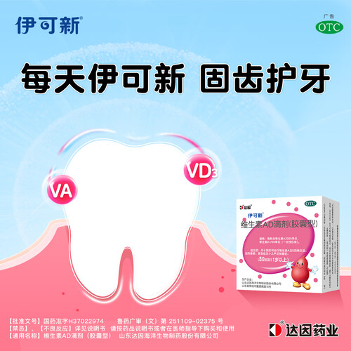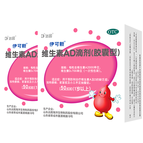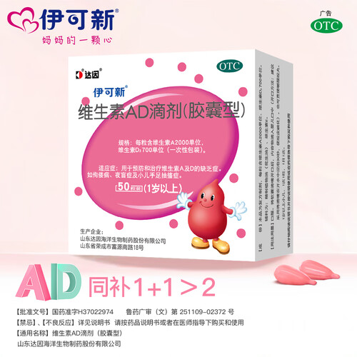 [伊可新]维生素AD滴剂 2000IU:700IU*50粒 2盒装 (胶囊型)50粒 1岁以上促钙吸收护视力助长高固牙齿
