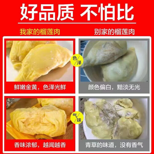 绿鲜森榴莲泰国金枕头新鲜A级速冷冻带核榴莲肉冷链配送生鲜水果 500gA级带核肉