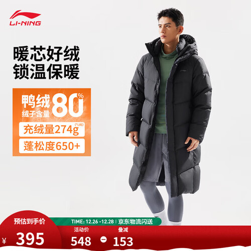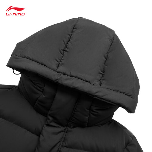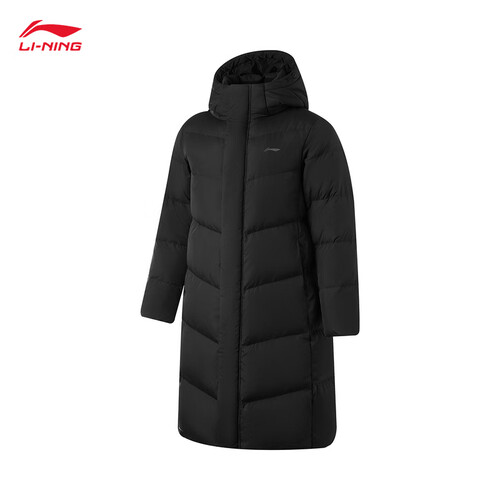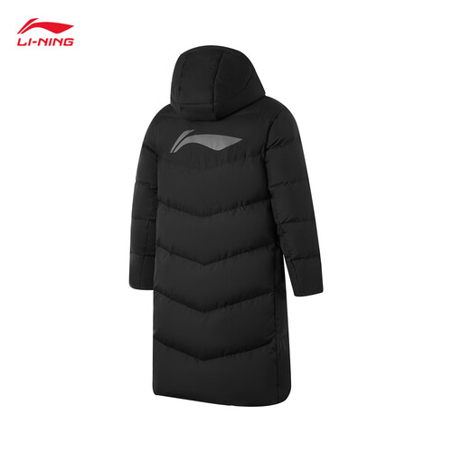 - 李宁防泼水长羽绒服男秋冬季时尚百搭80%鸭绒健身运动外套 黑色-1 S