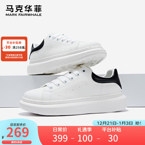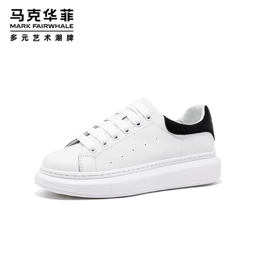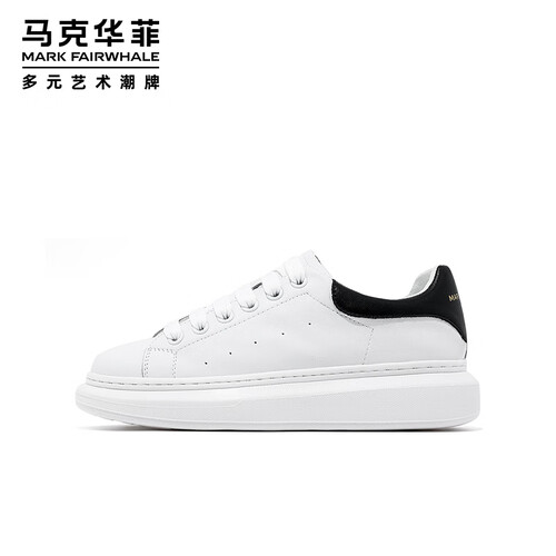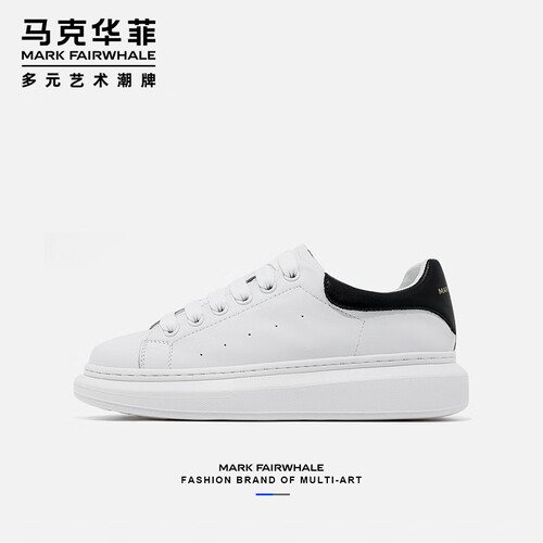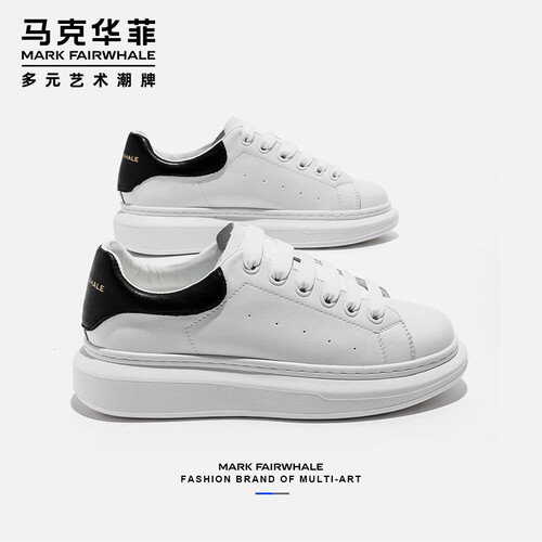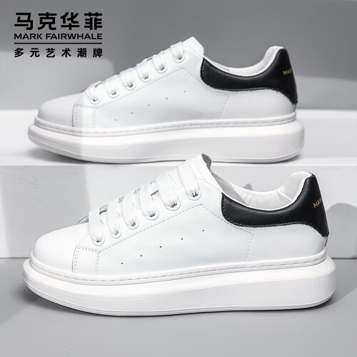 马克华菲男士小白鞋男2025新款透气厚底休闲鞋百搭运动板鞋 白黑色 42