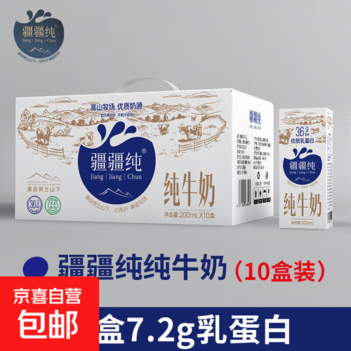 疆疆纯纯牛奶200ml*10盒装优质乳蛋白牛奶成人儿童营养早餐奶整箱 疆疆纯200ml*10盒*1箱