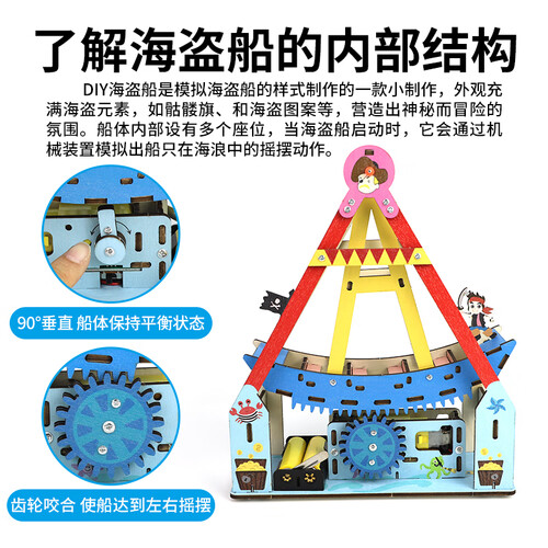 探梦steam玩具科技手工制作小学生自制海盗船电路手工制作材料包儿童 DIY海盗船