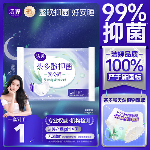 洁婷安心裤抑菌安睡裤夜安裤卫生巾经期防漏官方正品 L 1条 100-140斤