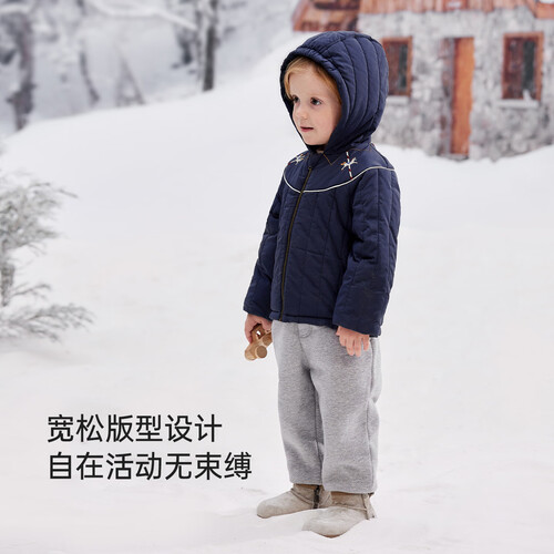 babylove宝宝夹棉防风外套冬季刺绣保暖上衣百搭加厚连帽外出棉服 星垂蓝 80