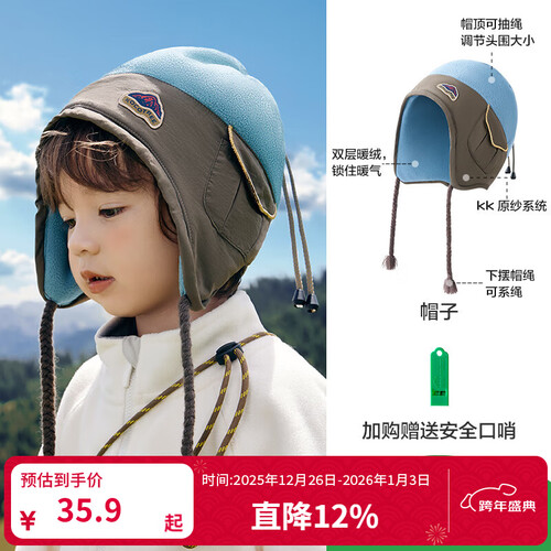 KocotreeKK树儿童帽子秋冬款男童女孩户外防风护耳帽宝宝围脖保暖2024新款 晚波蓝【单帽】 M码 (头围50~54cm 建议2~6岁)