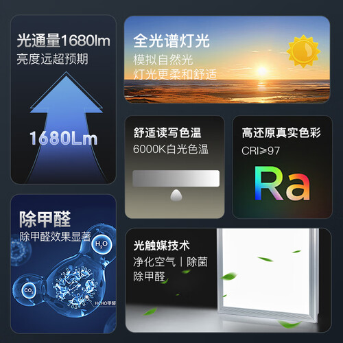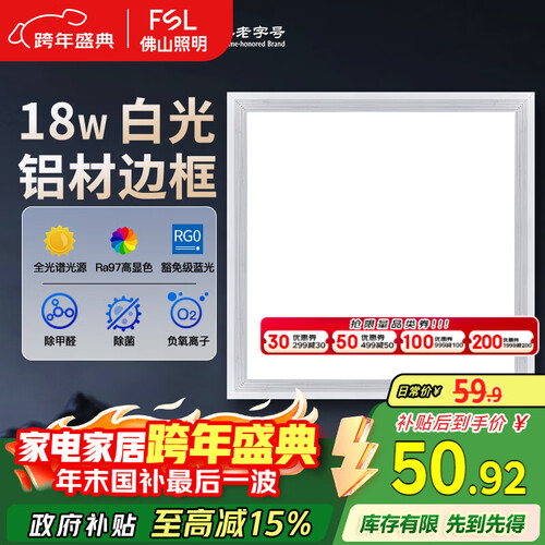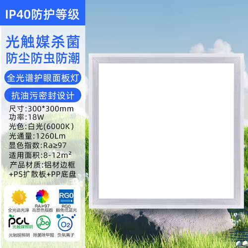 FSL佛山照明厨房灯扣板灯卫生间吸顶平板灯集成吊顶灯300*300清沁18W