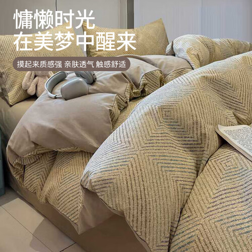 无印良品高级感全棉床单四件套纯棉双人被套床单三件套床品 秘境 1.5/1.8 床单款 四件套-被套200*230cm