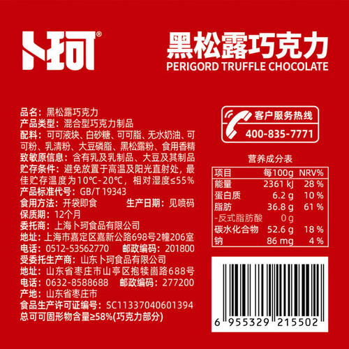 卜珂黑松露巧克力黑巧克力零食休闲食品黑巧克力糖果送礼物伴手礼 黑松露巧克力金年装