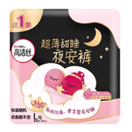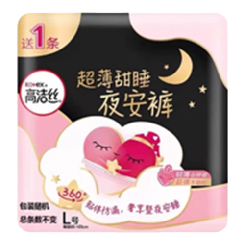 高洁丝蜜桃小姐安睡安心拉拉裤月经期用卫生巾防漏大姨妈夜用裤型卫生巾 L 1条 100-140斤 夜安裤1条装 1包1片(以实际条数为准)