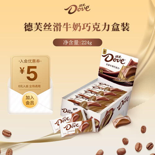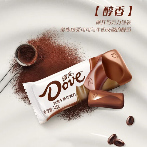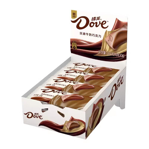 德芙(Dove)丝滑牛奶巧克力休闲零食婚庆喜糖送女友生日礼物儿童解馋充饥食品 丝滑牛奶14gx16条盒装224g