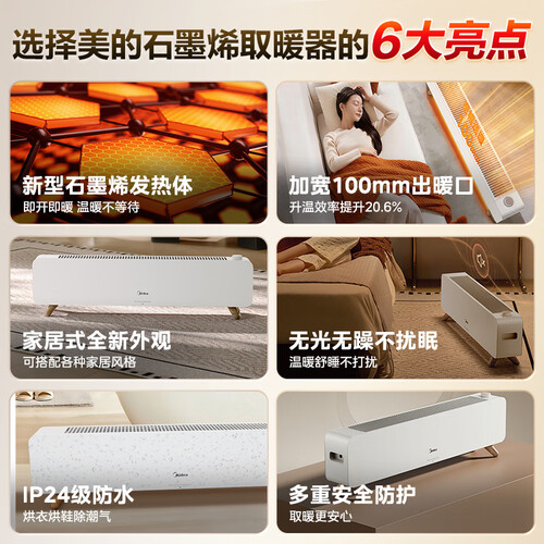美的(Midea)石墨烯踢脚线取暖器 家用立式落地电暖器客厅卧室全屋速热电暖气节能防水暖风机烤火炉 HDS22CK