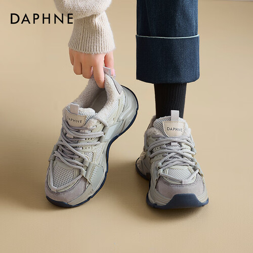 达芙妮加绒老爹鞋女2025新款冬季加厚保暖东北棉鞋防滑防水运动雪地靴女 灰色 【加绒保暖】 35