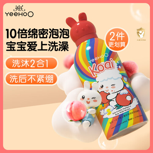 英氏儿童沐浴露洗发二合一婴儿沐浴露洗发水慕斯小奶泡350ml【拍2划算
