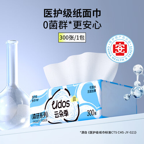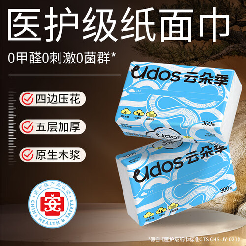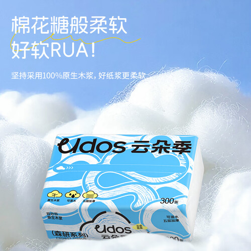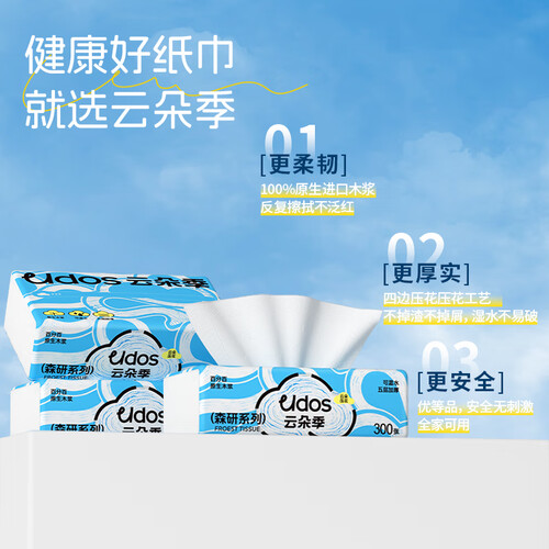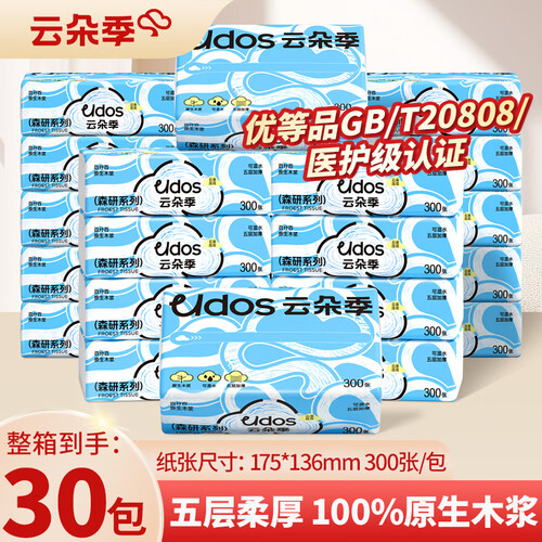 - 云朵季加厚抽纸纸巾餐巾纸优等品质家用卫生纸面巾纸 5层 300张*30包