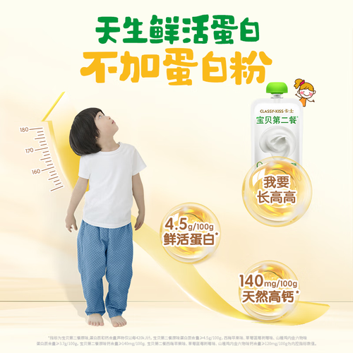 卡士CLASSY·KISS 宝贝第二餐酸奶(单袋85g)风味发酵乳 宝宝酸奶 原味无蔗糖*8袋