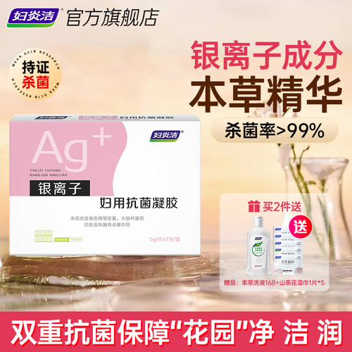 妇炎洁银离子妇用抗菌凝胶5g*7支私密护理瘙痒抑菌祛异味温和无刺激 1盒装【共7支】