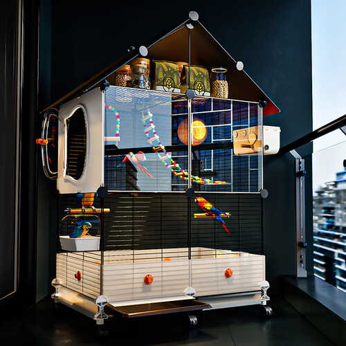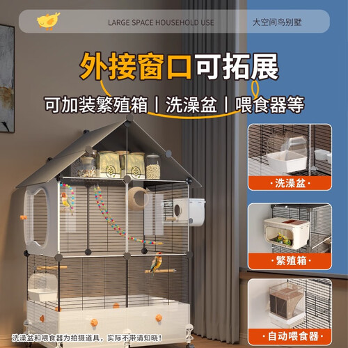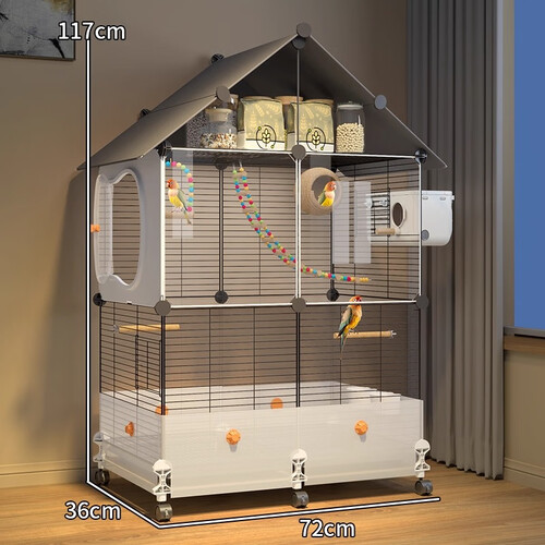 蔻丝鸟笼子鹦鹉大号防溅家用玄凤虎皮小太阳牡丹可洗澡生态别墅鸟笼 超大号72*36*117-三层四室-2-4鹦鹉 多鹦鹉鸟别墅8件套:详情页看明细