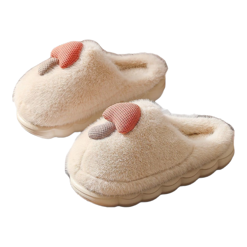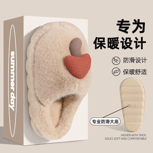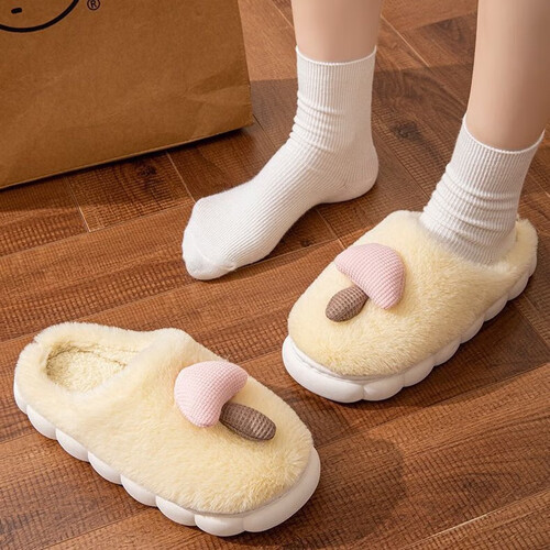 卡通棉拖鞋蘑菇毛绒女冬季保暖情侣居家室内加绒月子鞋男拖鞋包根 卡其 38-39 (适合37-38)