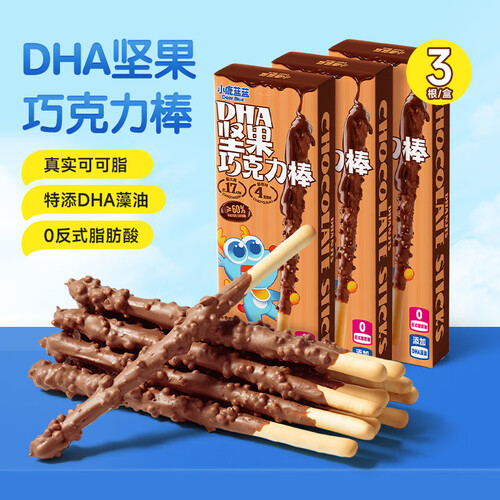 - 小鹿蓝蓝DHA坚果巧克力棒儿童零食宝宝磨牙炭烧棒无蔗糖棒棒 【1盒|爆款原味】坚果巧克力棒/42g