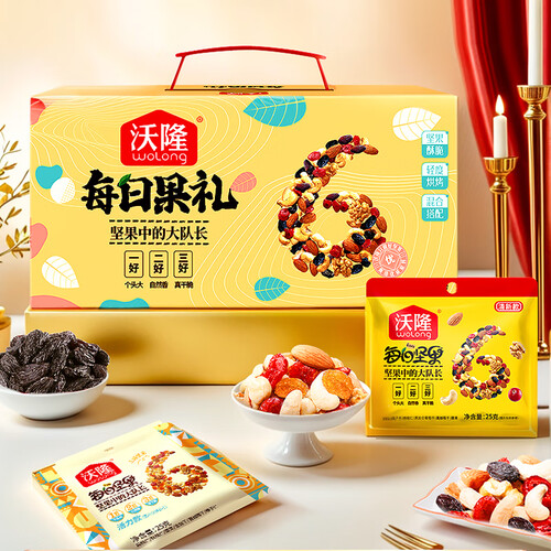 - 沃隆坚果礼盒每日坚果干果炒货年货送礼礼盒罐装团购休闲零食大礼包 620g/盒每日果礼升级版