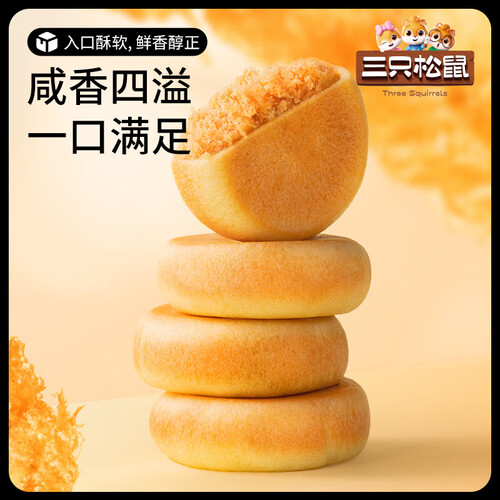 - 三只松鼠休闲零食黄金肉松饼整箱早餐面包糕点下午茶充饥学生办公室零食 【1000g】肉松饼500g*2箱