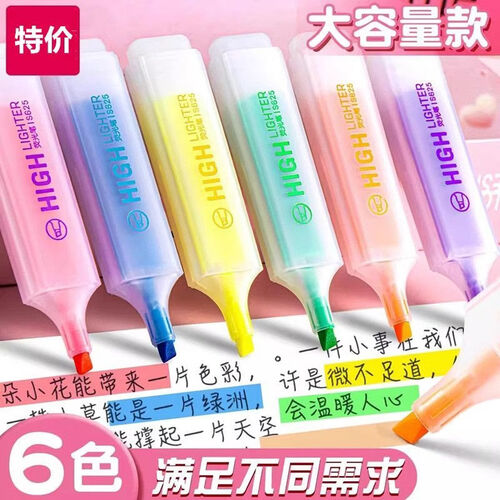 - 荧光笔高颜值学生用彩色标记笔淡色系复古莫兰迪色系做笔 大容量荧光笔 6支