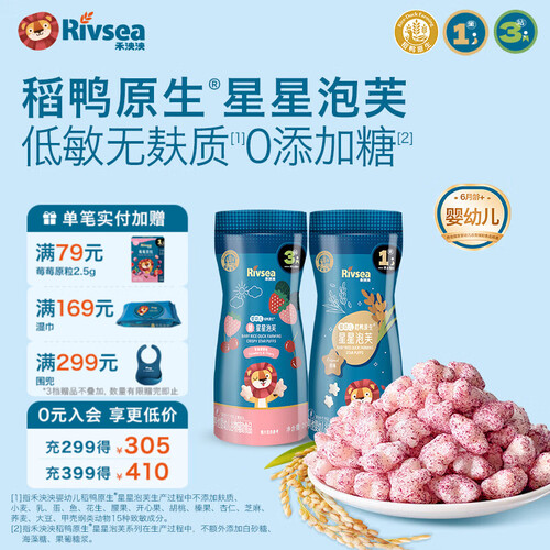 - 禾泱泱婴幼儿稻鸭原生星星泡芙 宝宝儿童零食低敏6个月以上辅食泡芙条 【2罐】星星泡芙原味16g+草莓味20g