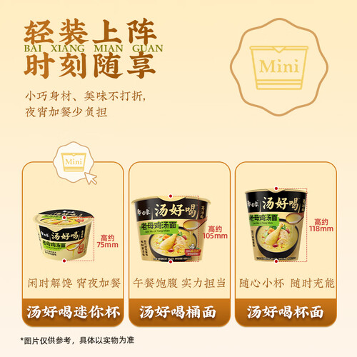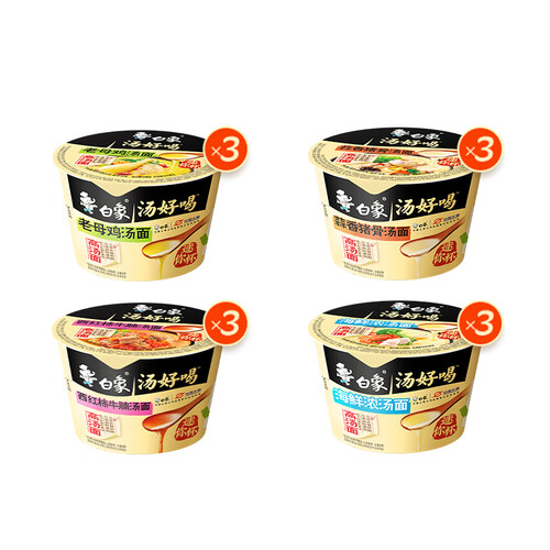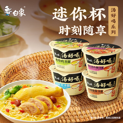 - 白象汤好喝方便面混装多口味泡面迷你杯面整箱 汤好喝4口味混装12杯