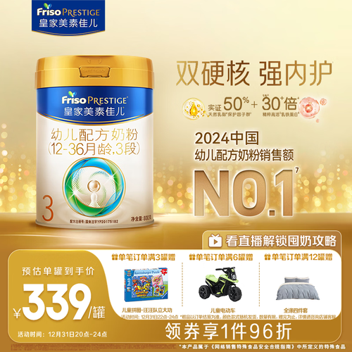- 美素佳儿(Friso)皇家幼儿配方奶粉 3段(1-3岁幼儿适用)800g 乳铁蛋白 (新国标)