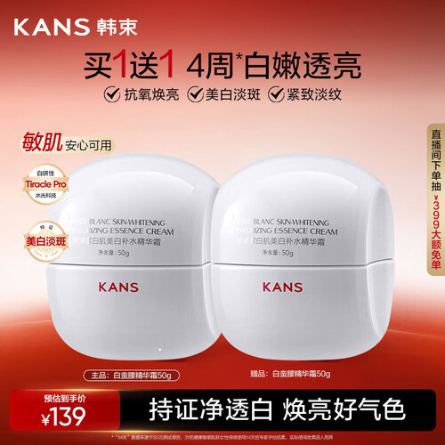 韩束白蛮腰面霜50g美白淡斑去黄提亮改善雀斑淡化黑色素护肤品送女友