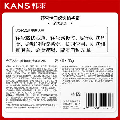 - 韩束白蛮腰面霜50g美白淡斑去黄提亮改善雀斑淡化黑色素护肤品送女友