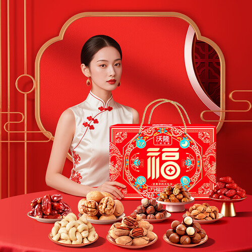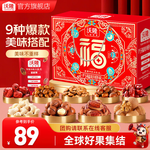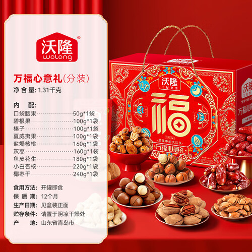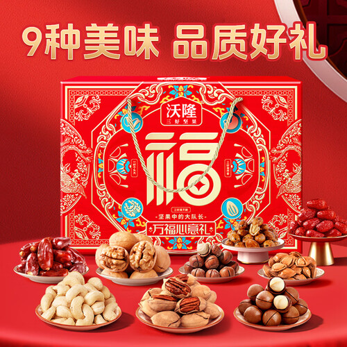 - 沃隆坚果礼盒休闲食品混合坚果果干礼盒健康零食年货节大礼包团购送礼 【9种搭配】万福心意礼1310g