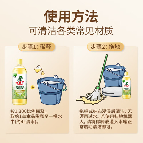 - 水卫士地板清洁剂婴宠家庭适用 扫地机器人专用 瓷砖拖地去污除菌去污垢 地板清洁剂1kg*2瓶【婴宠适用】