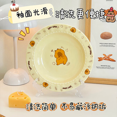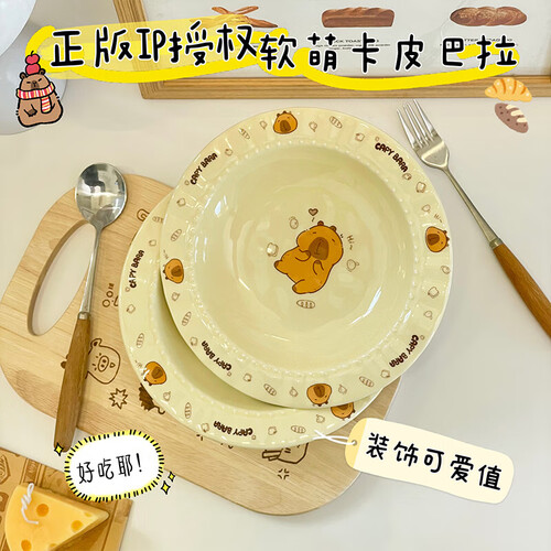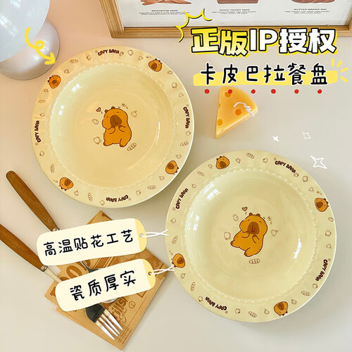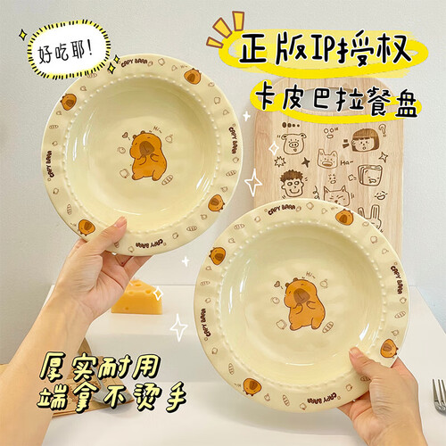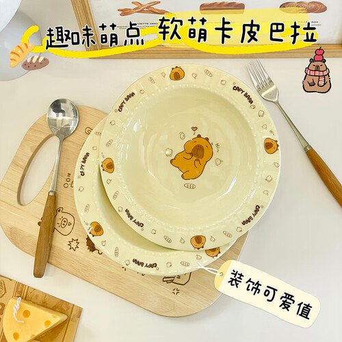 - 卡皮巴拉陶瓷餐盘可爱家用宿舍草帽盘蛋糕盘高颜值精致餐具碗盘 卡迪巴拉【1个装】8.5英寸草帽盘
