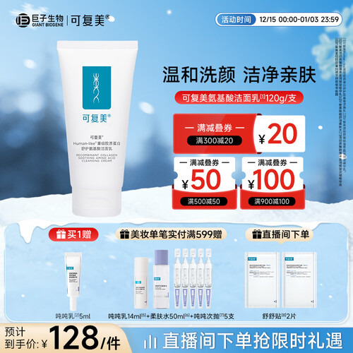 可复美重组胶原蛋白氨基酸洁面乳120g温和清洁不刺激保湿男女洗面奶