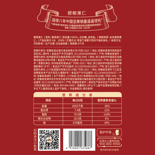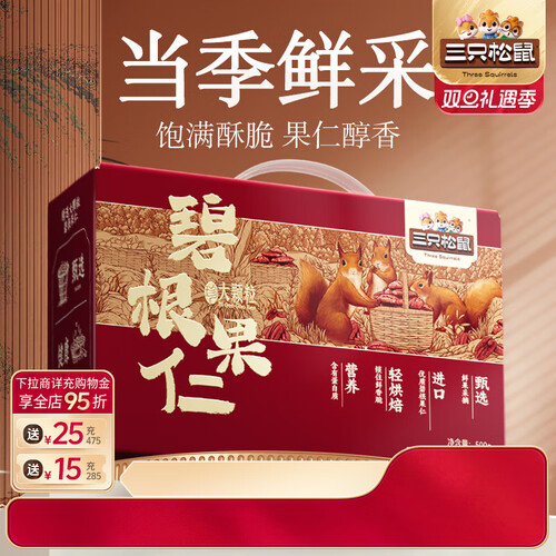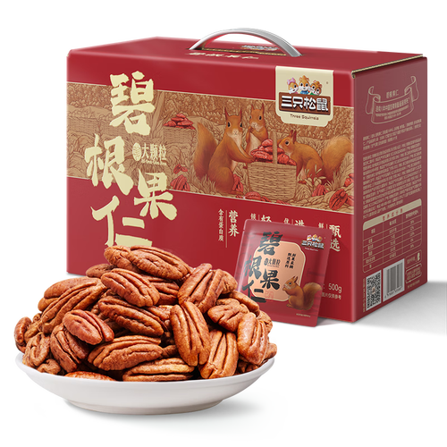 - 三只松鼠量贩碧根果长寿果特大颗粒健康坚果零食特产休闲食品节日送礼 【送礼优选】箱装碧根果仁500g