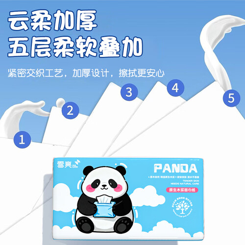- 雪亮500张大包抽纸优等品5层加厚纸巾大尺寸面巾纸餐巾纸可湿水卫生纸 5层 500张*6包