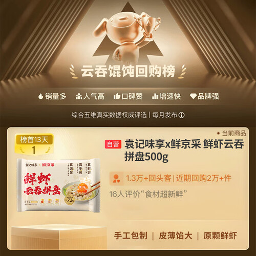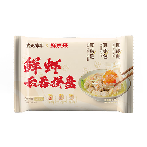 - 袁记味享x鲜京采 袁记云饺鲜虾蟹籽三拼云吞拼盘24颗500g鲜肉馄饨年货送礼
