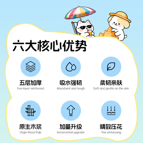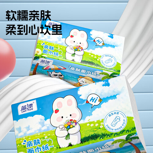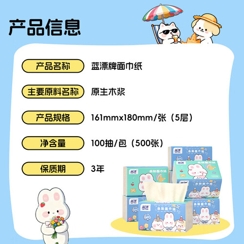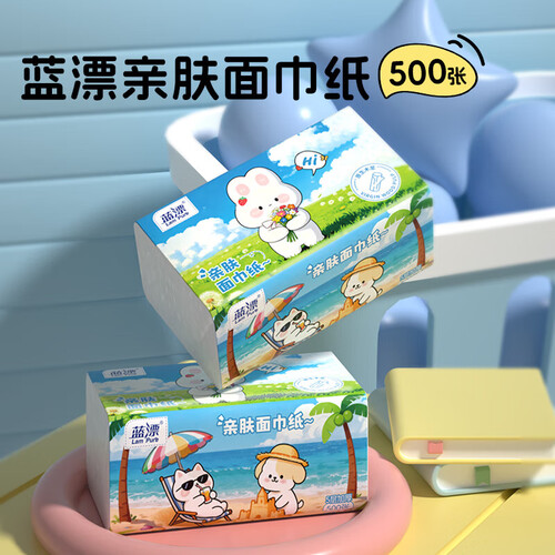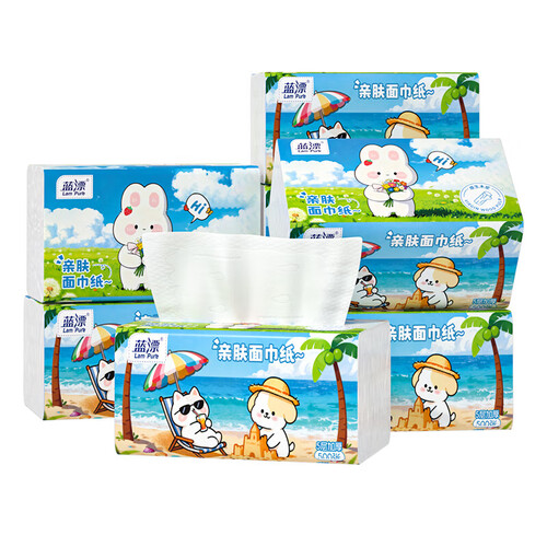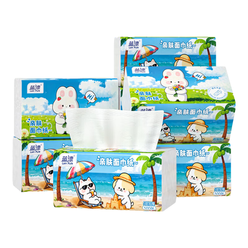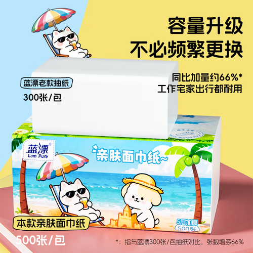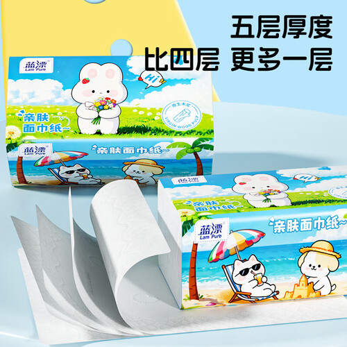 - 蓝漂纸巾抽纸面巾纸 4边压花锁花 超大包原生木浆100抽5层加厚 5层 500张*5包