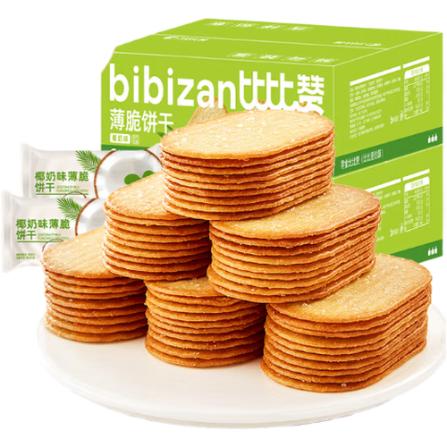 - 比比赞椰奶薄脆饼干休闲零食早餐代餐整箱 椰奶味300g*1